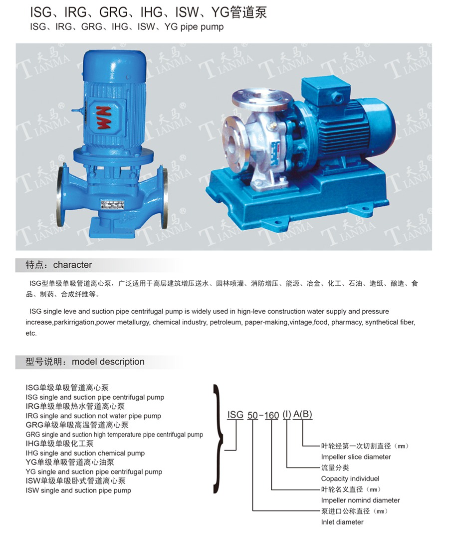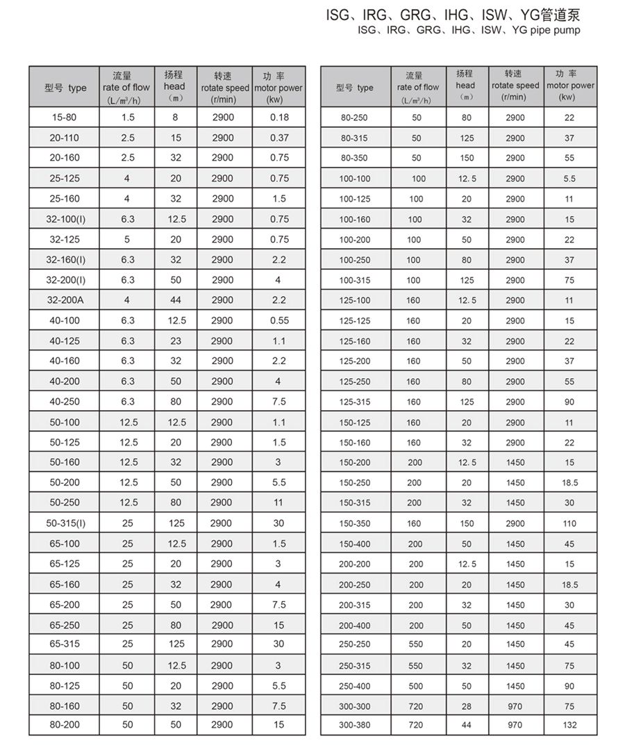 ISG、IRG、GRG、IHG、ISW、YG管道泵